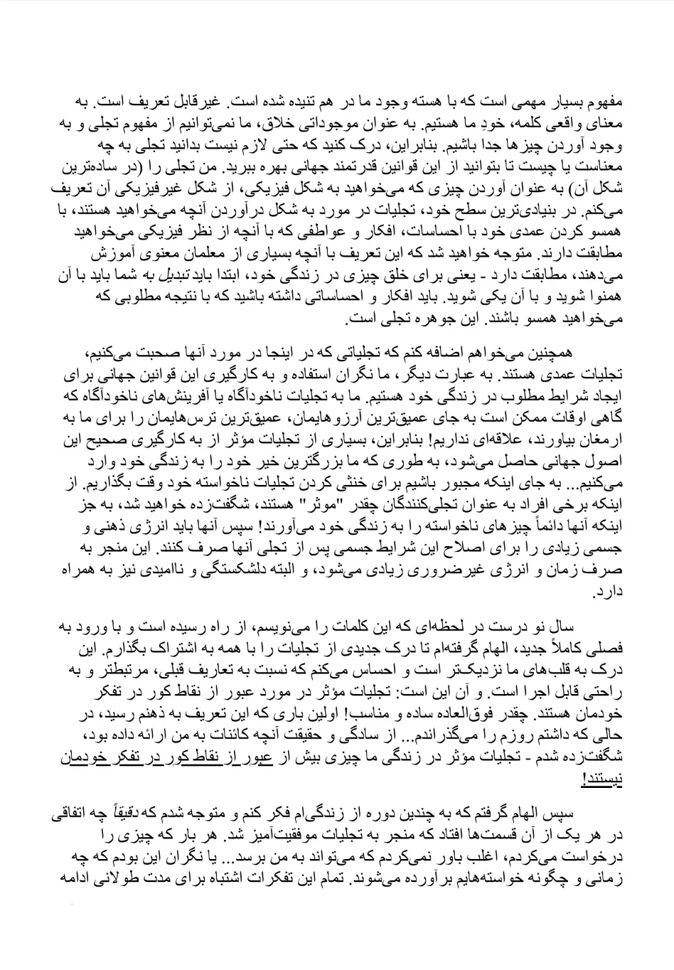 داشتن یک زندگی معنوی به معنای کنار گذاشتن زندگی فعلی و رها کردن هر چیزی که دارید نیست. هسته اصلی آموزههای او این است که شما میتوانید از همین حالا، از جایی که هستید، در هر زمینهای که هستید، یک زندگی معنوی و جادویی را رهبری کنید. شما میتوانید سهم منحصر به فردی در جهان داشته باشید، زیرا از تواناییهای یک خالق واقعی برخوردار هستید. با یادگیری نحوه شکل دادن به انرژی اطراف خود، زندگی شما میتواند در یک لحظه تغییر کند، اگر به آن اجازه دهید!