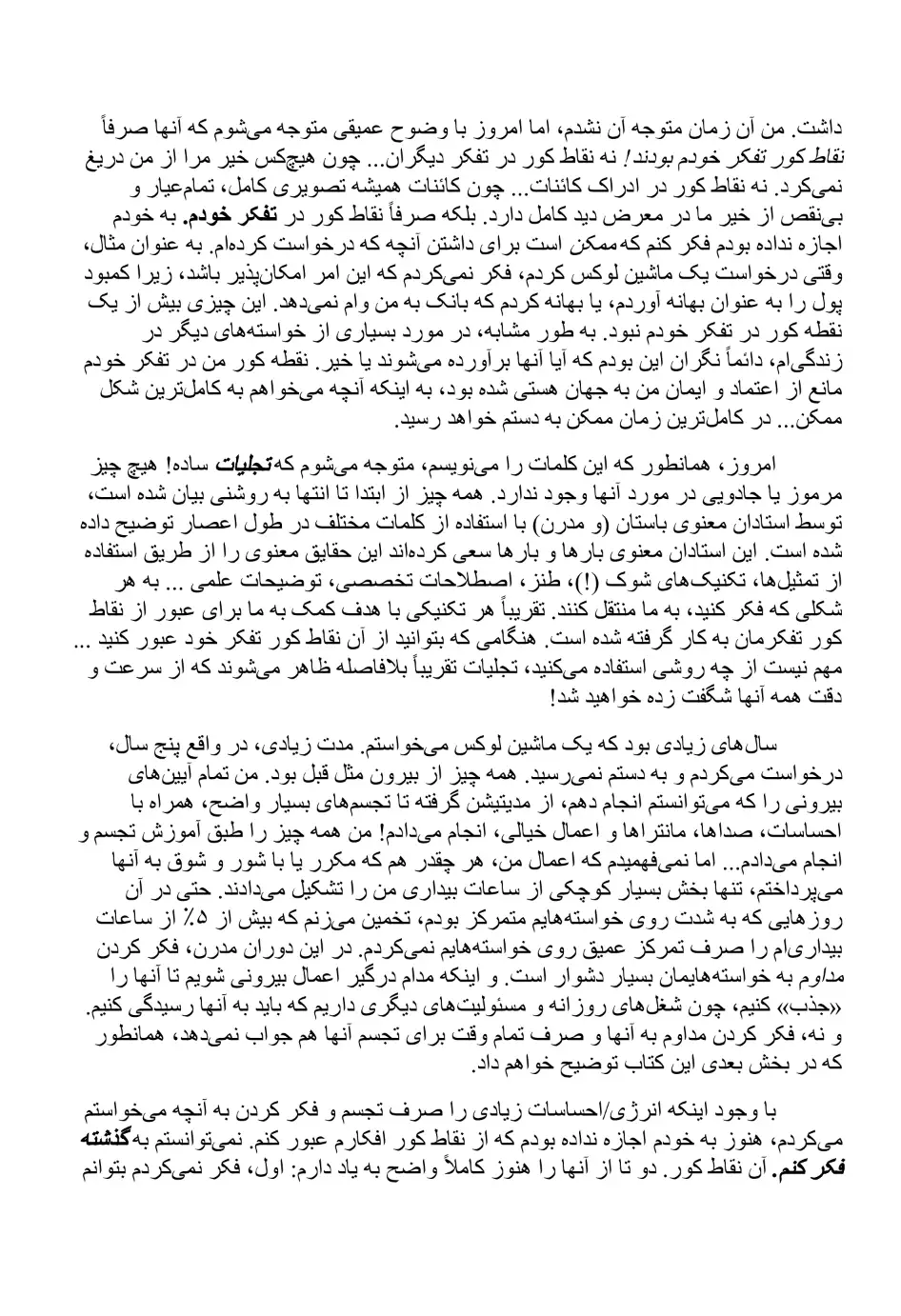 این کتاب به شما یاد میدهد که چگونه «نقاط گیر افتاده» در ذهن خود را شناسایی کنید. اینها همان گرههای فکری پنهانی هستند که درست زمانی که حواستان نیست، تمام انرژی مثبت تمرینات شما را خنثی میکنند. شما میآموزید که: