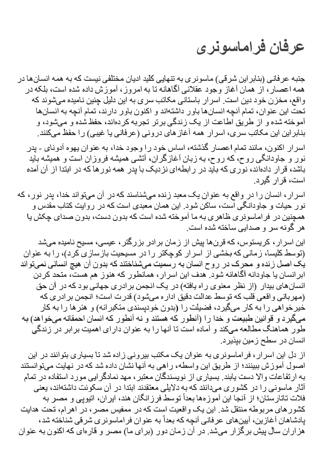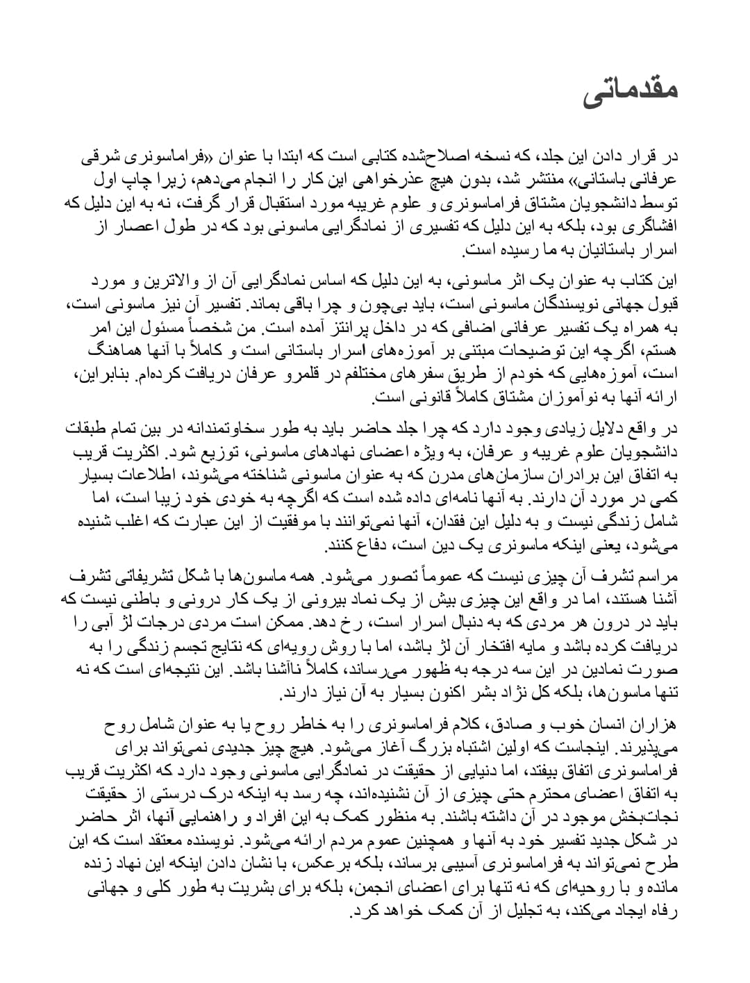 این کتاب نسخه بازنگری شده اثری است که در ابتدا با عنوان «فراماسونری شرقی عرفانی باستانی» منتشر شد و با استقبال مشتاقانه دانشجویان علوم غیبه و فراماسونری روبهرو گشت. نویسنده با جسارت، اعلام میکند که این متن یک افشاگری ساده نیست، بلکه یک ابزار روشنگری است.