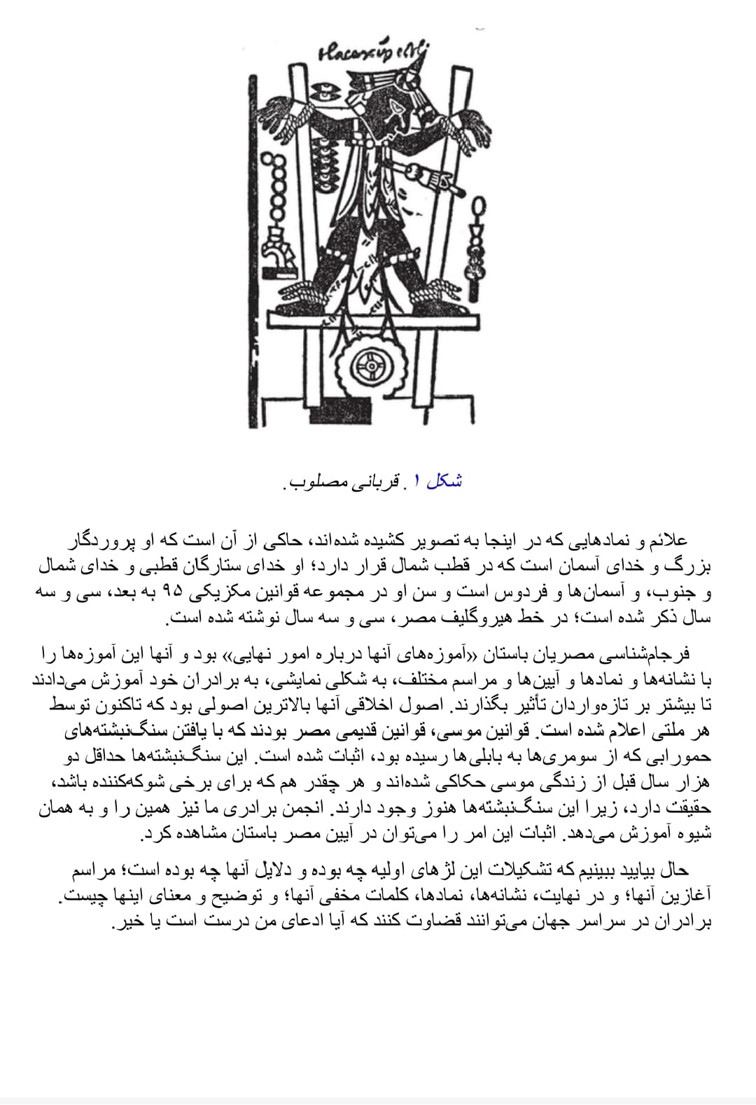 «فراماسونری نه یک پدیده مدرن، بلکه میراث مستقیم آیینهای باطنی مصر قدیم و فرقههای ستارهای با قدمتی بیش از سیصد هزار سال است که در دوران پلیوسن شکل گرفته است.»