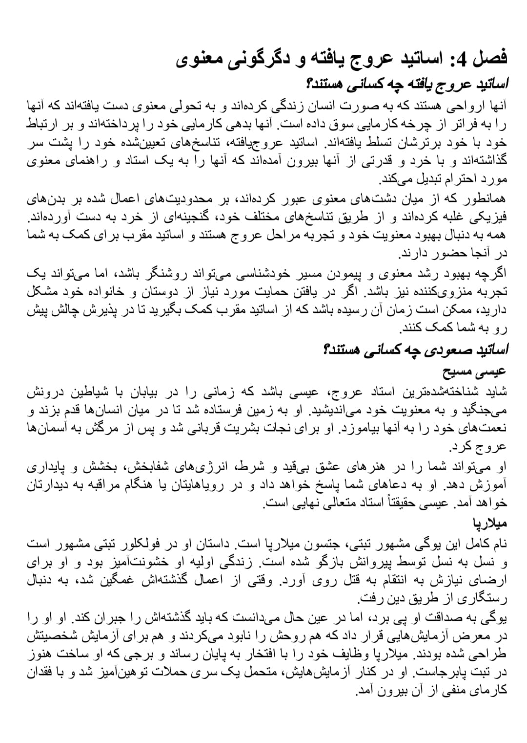 - شناخت اساتید عروج یافته و درک نقش آنها در تحول و دگرگونی معنوی شخصیتی شما.