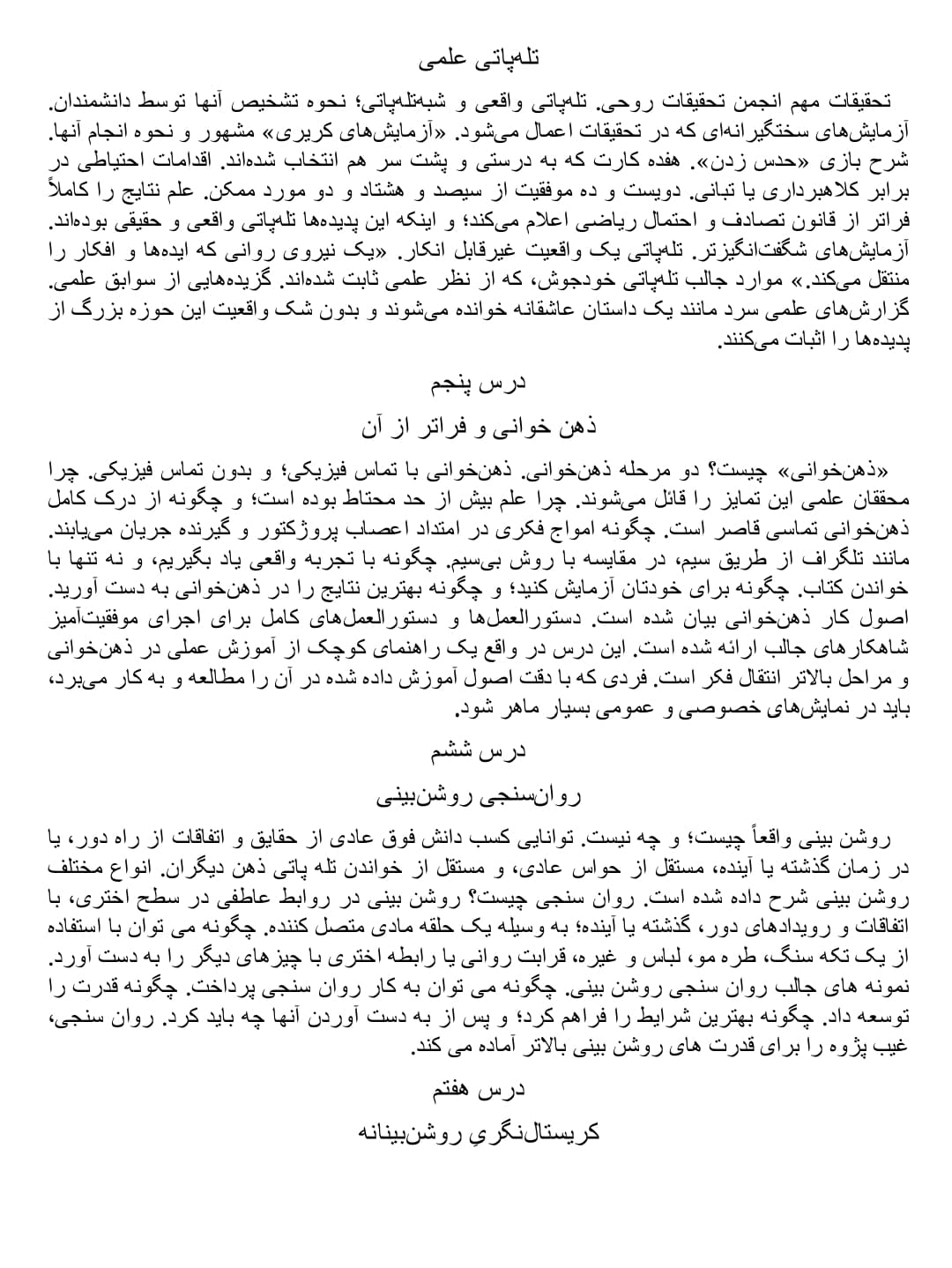 کتاب تله پاتی و ذهن خوانی - ترجمه فارسی