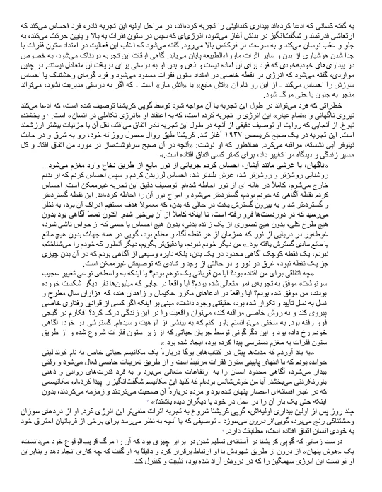 - بخش سوم – «آینه»: چاکراها، غدهی پینهال، هیپوفیز و دو کانال «ایدا-پینگالا» را در قالب یک نقشهی عصبی-روحانی ترسیم میکند تا خواننده متوجه شود بدن فیزیکی خود را چگونه میتواند به «ابزار تغییر امواج» تبدیل کند.