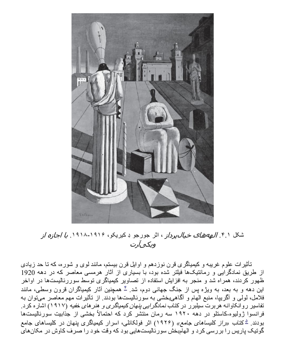 - ★ ردپای کیمیاگری در تاریخ هنر: کتاب تأثیر عمیق سنت هرمسی را بر جنبشهای هنری کلیدی از دوران رمانتیسم و سمبولیسم گرفته تا سورئالیسم، دادائیسم و هنر معاصر بررسی میکند و نشان میدهد که چگونه هنرمندان بزرگ بهطور آگاهانه یا ناخودآگاه از زبان، نمادها و فرآیندهای کیمیاگری برای ایجاد آثار دگرگونکنندهشان استفاده کردهاند.