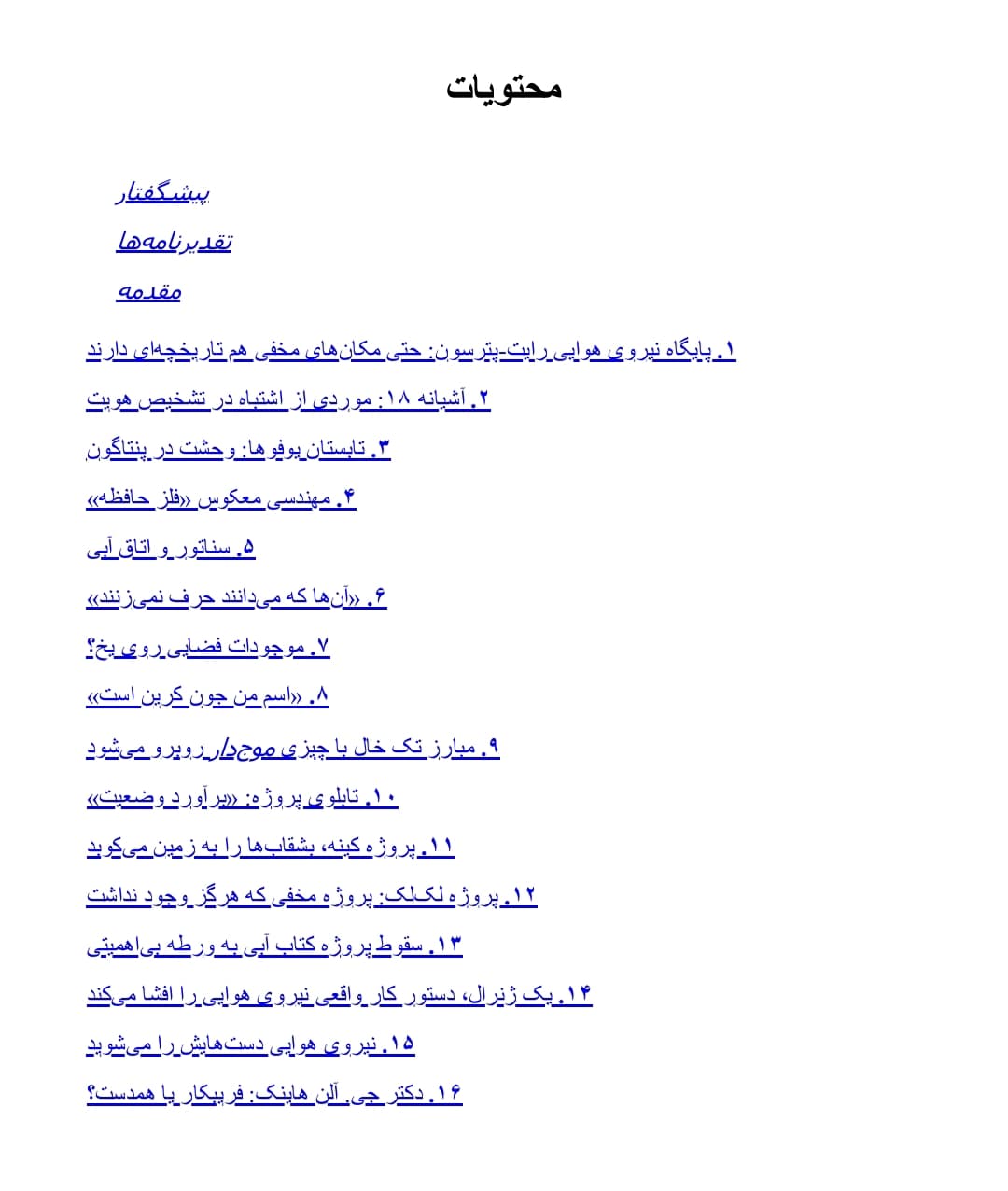 بخش اعظم این کتاب به پایگاه رایت-پترسون در اوهایو اختصاص دارد؛ مکانی که برای دههها در سایه اسطوره «منطقه ۵۱» پنهان شده بود. از طریق گزارشهای موثق، درمییابیم که چگونه لاشه فلزات حافظهدار عجیب و غریب و اجساد موجودات فضایی در آشیانههای فوق محرمانه این پایگاه (از جمله آشیانه ۱۸ مورد بحث) نگهداری میشدند. این پایگاه نه تنها مرکز ذخیرهسازی، بلکه کانون تلاشهای بیوقفهای بود که تحت پروژههایی با نامهای رمز، برای مهندسی معکوس فناوری فرازمینی به کار گرفته شدند.